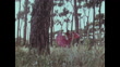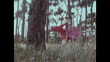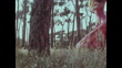 Model wearing long dress twirls around in forest; 1967 - HD Stockvideo