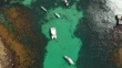 Aerial video from a drone captured in August 2023 of a collection of moored boats at St Agnes Island, Isles of Scilly, Cornwall, UK.