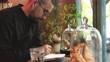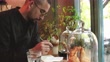 One man sitting at his favorite coffee shop and enjoying a latte while planning his day