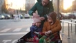 Mother preparing children for the ride in cargo bike - 4K Stockvideo