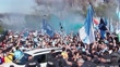 Napoli fans, await celebrating the arrival of the team at...