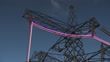 Computer generated graphics of colourful neon sparks running through electricity pylons. (ERYN003Y - AEVZ001J)