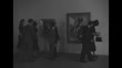VS newly renovated sculpture garden with several works / View from inside the building through windows into the garden / A group composed of John Hay Whitney, Mrs. W. T. Emmet, A. Conger Goodyear, Museum Pres. Nelson A. Rockefeller, Mrs. John Sheppard, Edsel Ford, and Mrs. John Parkinson, Jr. strolling past Picasso's 'Les Demoiselles d'Avignon' and 'Girl Before Mirror'