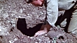 MONTAGE 6th Marine Division sapper removing several tomato can mines from the ground and disarming one by removing the trigger and explosive material / Okinawa, Japan