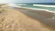 Wide angle video of ocean waves hitting sand on a sunny day