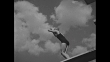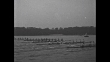 Title card: "Olympic Finals" superimposed over men's eights rowing competition / WS EXT Berlin Olympic Stadium, filled with crowds / 8/9/1932: marathon runners run inside stadium / WS spectators watch marathon from inside top of church steeple / montage marathon runners run / Korean winner Son Kee-Chung of Japanese delegation reenters Stadium, crosses finish line / actual date not known: female diver, possibly Marjorie Gestring, executes graceful dive / diver, possibly Dorothy Poynton, dives / stands / Katherine Rawls does somersault dive / crowds / 2-shot Gestring and Rawls / men's eights regatta rowers move away from starting line / crowd on shore / MS rowers / CU man and woman with binoculars on shore / 8/14/1932: US, German, Italian teams in close finish with US winning