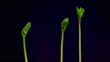 Bovengrondse mening van drie bonen die en van spruiten roteren, die tegen een zwarte achtergrond worden ontsproten. - 4K Stockvideo