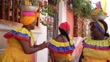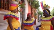 Palenqueras dancing on the street in Cartagena, Colombia - 4K Stockvideo