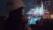 Petroleum oil refinery engineer worker using tablet show oil refinery factory in motion graphic in the air with artificial intelligence technology app system