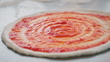 Pizza chef spreading tomato sauce on the pizza - 4K Stockvideo