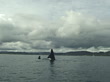 pod of orcas, killer whales, surfacing. Bay of Islands, New Zealand