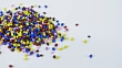 4K footage of various colored polymer granules. Dolly shot.