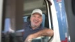 Portret van een hogere mannelijke vrachtwagenbestuurderzitting in cabine - 4K Stockvideo