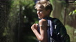 Portrait of a vaccinated teenage boy going to school - 4K Stockvideo