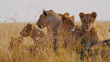 Pride of lions resting,laying together in tall grass - 4K Stockvideo