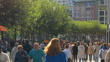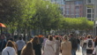Real time Footage of Crowd of Diversity people tourist walking and shopping attraction around Zeil shopping street in Frankfurt am Main, Germany - 4K Stockvideo