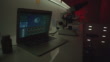 Rood Alarm in laboratorium. Wetenschapper werkt voor het computerscherm. - 4K Stockvideo
