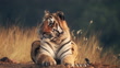 Royal Bengal tiger yawning and relaxing in Central Indian Forest