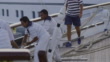 Sailors working on a sailboat - HD Stockvideo