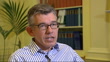 Brian Quinn (Former Deputy Governor, Bank of England) set up shots with reporter / interview SOT