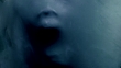 Screaming human face pressing through fabric as horror background
