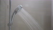 Shower head was installed on the wall in the bathroom, Water flowing out of the shower.