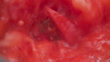 Slow motion top view shot of Watermelon juice smoothie in the blender