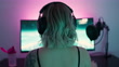 Streamer die haar hoofdtelefoon op vóór het gokken zet - 4K Stockvideo