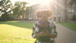 Rearview follow shot of a student arriving at the University