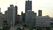 Sweeping aerial view over the skyscrapers of downtown Detroit, to the north horizon of the city.