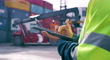 Tablet, shipping and hands of worker on dock for inspection, online logistics and warehouse inventory. Supply chain, ecommerce website and man on digital tech for cargo, freight container and storage - 4K Stockvideo