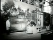 MOT 1939: BEHIND THE SCENES: Talent Agent Charlie Einfeld (not confirmed) at desk. Workmen leaving MGM lot. Woman stylist working in wig department styling Alice Faye's wig. Costume designer. Scenic & Set designers working. Film Industry.