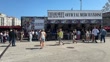 LISBON, PORTUGAL - MAY 23: Taylor Swift fans walk by official merchandising as they get ready for two concerts at the entrance of the Benfica stadium on May 23, 2024 in Lisbon, Portugal. (Footage by NAYATO LX/Getty Images)