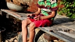 HD1080p : Teenager boy of Indian ethnicity sitting on cart & playing game on mobile phone.