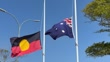 BALLINA, AUSTRALIA - DECEMBER 15: The Australian flag and the Aboriginal flag fly at half-mast outside Ballina Byron Gateway Airport on December 15, 2025 in Ballina, Australia. Police say at least 15 people and one suspected gunman were killed and more than a dozen others injured when two attackers opened fire near a Hanukkah celebration at the world-famous Bondi Beach, in what authorities have declared a terrorist incident. (Footage by James D. Morgan/Getty Images)