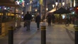 GV people away through Christmas market and bollards in F/G TILT UP lights and banners overhead