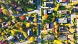 Bovenaanzicht, vliegen over idyllische villa gebied - 4K Stockvideo