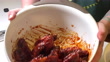 Tossing Chicken Wings in Sauce in White Bowl to Prepare to Deep Fry for Dinner with Friends - 4K Stockvideo