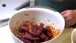 Tossing Chicken Wings in Sauce in White Bowl to Prepare to Deep Fry for Dinner with Friends