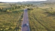 4K Transportation Aerial view white car driving on countryside road - 4K Stockvideo