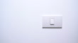 Close up shot of people turn on and turn off a light switch on white background with copy space