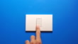 4k real time of People turning off light bulb switch on blue wall background with copy space. save energy and global warming concept