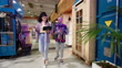 Two creative professionals discussing a project on digital tablet walking at makers space - 4K Stockvideo