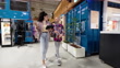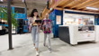 Two creative professionals discussing a project on digital tablet while walking through makers space. Business man and woman working together at creative makers space.