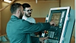 Twee ingenieurs is de programmering van een CNC freesmachine - 4K Stockvideo