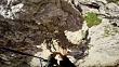Point of View Video: Hiking on the Alps, dangerous passage with metal wire.