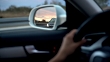 View of car passing in side view mirror. CU,real time.