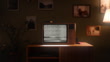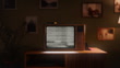 An old-fashioned television displaying static noise, placed on a wooden stand in a cozy, vintage-styled room with soft lighting. The atmosphere reflects nostalgia and a retro vibe.