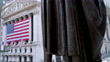 View of the New York Stock Exchange (NYSE) in Wall Street. Thee statue is of a large bronze sculpture of the first President of the United States, George Washington, by John Quincy Adams Ward, installed on the front steps of Federal Hall National Memorial on Wall Street in New York City. (Footage by Tomas Abad/Getty Images)
