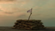 Witte vlag achter militaire zandzakken tegen sullenhemel - 4K Stockvideo